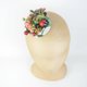 The base is covered in vintage floral fabric and is 7cm in diameter and the piece is approximately 5cm high. Secures the hair with a metal hair clip.
