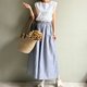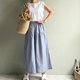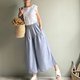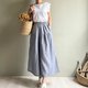 航向遠方/單寧色系雙層棉紗剪接小細摺中長寬褲裙純棉