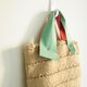 兩邊紅綠不同、不規則的軟皮提把,加上原麻繩編織