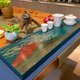 在每一層漆上好等待乾燥到可以打磨都需要時間的等待以及空間上濕度的穩定,透過不斷的打磨,顯現出自然的漆器紋理,更可以製作主題性的漆畫。