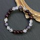血滴堇青石8mm、藍針白水晶7~8mm、石榴石8mm、純黃銅配件、進口彈性線
