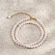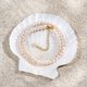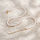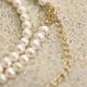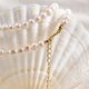 這款項鍊以純白珍珠搭配金色延長鏈,象徵純淨與自信。簡約設計中流露優雅,突顯女性自然與時尚之美。