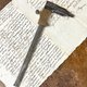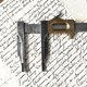 典藏法國古董精鋼黃銅卡尺,主體烏黑精鋼搭配黃銅滑動片,黃銅片上優雅鐫刻著原主人的手寫花體簽名,黃銅滑塊依然緊實,但數字因百年使用而模糊難辨,這份磨損反而更添其魅力與迷人韻味。這不只是一件測量工具,更是一件藝術品、一個歷史切片、一份精緻的書桌、櫥窗擺飾。