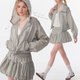 - ziziFei夏美式復古設計感蝴蝶刺繡短款長袖薄款連帽防曬衫外套女