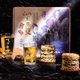 搭配臺式啤酒杯,杯身印有「萬引天殊劍歸宗」、「萬代河山滿江紅」、「天下無雙」、「吞日龍吟」、「紫龍捲怒濤」、「劍影紛紛」等招式(聯名啤酒杯共六款,隨機出貨),一口花生、一口啤酒,相揪摯友,乾杯有如過招,「共飲逍遙一世悠然」。