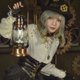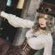- 蒸汽朋克復古綁帶V領本白色純棉長袖套頭直筒上衣襯衫