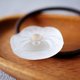 ヘアゴムの色は茶色です。マットな白いパーツは、髪の毛を結んだときにも立体感やお花のモチーフがわかりやすく、程よい大きさは日常使いにもぴったりです。