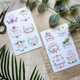 -套組包含春、夏、秋、冬各一入,共有「經典手寫字款」(純文字)與「手寫字+四季花繪款」(手寫字+圖案)兩款,每款包含同系列共四張轉印貼紙。