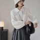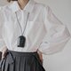 白色翻領泡泡袖襯衫|襯衫|夏秋款|Sora-1269