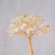 「聚寶盆-永生水晶樹」是以黃水晶與晶洞結合注金工藝線編製而成。底部使用纏繞的方式包裹著晶洞,展現出根系生長的姿態,順著枝幹向上攀升的過程,逐漸展現出花木的生長方式,結上一顆顆的黃水晶,猶如枝葉綻放,絢麗而生動。