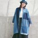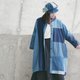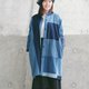 外套用了三種顏色的牛仔布料,以長方形、正方形拼接而成。不同顏色、形狀的牛仔布交替拼湊出外套獨特的模樣,簡約卻一點也不單調。