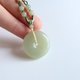 天然和田玉平安扣吊墜,冰底晴水料,玉質細膩,水頭足,搭配精美手工繩,墜尺寸約26.5×8.2mm