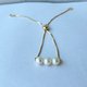 嚴選日本海水養殖的Akoya珍珠,以其柔和光澤與高圓度著稱,呈現出細緻潔白的氣質光感。三顆珍珠簡約排列,宛如晨露滑落手腕,低調中散發典雅氛圍。