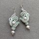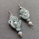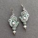 - Beautiful ivory and white earrings are made using soutache embroidery technique. Can be worn as wedding, bridal earrings. Materials: beads, seed beads, soutache cord. The back side is covered with leather. Light weight.