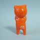 The orange bear ran away carrying the sleeping orange plane cat on his back.