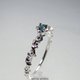 深いブルーグリーンのトルマリンを、唐草の細身のリングにセットしました。