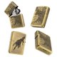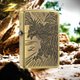 獨具品味的12生肖打火機,以亮面黃銅拉絲紋路製成外殼,正面雕刻著雞機甲型態,搭配ZIPPO獨特Z草寫小圖字,背面則呈現機械羽翼特徵。