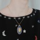 4.6x2.3cm 橢圓木頭繡框項鏈作品(項鍊長約45.5cm)