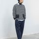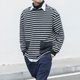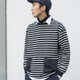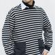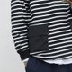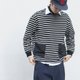 日系潮流 休閒寬松黑白條紋長袖圓領T恤 秋冬搭配 貼袋設計