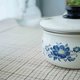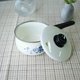 品名:日本雜貨-昭和時代全新品白色青花瓷花朵珐瑯單柄鍋