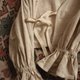 棉麻本身具有天然的質感,柔軟卻不失挺度,既能保證穿著的舒適度,又能讓服裝保持良好的結構感。這種材質在自然的光線下常能散發出柔和的光澤感,與圍裹式、澎袖的設計相得益彰。
