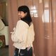 獨具存在感的蓬鬆糖果袖與後方腰身鬆緊的設計相呼應,