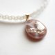 以濃郁的藍色為背景,點綴花朵和珍珠,搭配閃粉與白色線條,設計出優雅的吊墜。俐落的方形線條能讓頸部線條看起來更為修長。深沉的藏青色是秋冬季節的絕佳搭配單品。