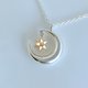美しい弧を描いた三日月の中で、キラキラと光るK18イエローゴールド製の小星型12面体の星が可愛く揺れるペンダントです!