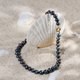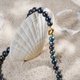 這款項鍊以黑孔雀色珍珠與金色航海扣結合,象徵力量與優雅。珍珠寓意智慧與高貴,金色細節展現奢華氣質。