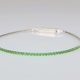 手鏈以極簡俐落的直排設計,將翠綠的沙弗萊石緊密鑲嵌於18K白金鏈身之上,線條流暢細緻。頂級淨度A++切割彩寶,嚴選頂級切工,使沙弗萊的獨特色澤更加璀璨,散發出獨有的生命力與活力感。纖細卻奢華的設計,既能單獨配戴展現精緻高雅,也能與其他手鏈疊搭,營造個人化的風格。