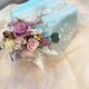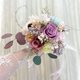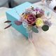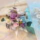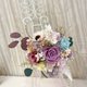 花材:永生玫瑰、永生繡球、尤加利大園葉、索拉花、滿天星、卡斯比亞