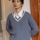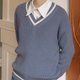 V領條紋毛衣也是第一次出啦