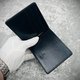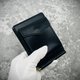 這款外掛零錢袋鈔票夾短夾以其獨特的設計和材質脫穎而出,將簡約與功能性完美結合。採用義大利頭層植鞣牛皮,這種高品質的皮革不僅手感硬挺,且經久耐用,擁有自然的紋路和光澤。整體為素面全黑設計,低調卻不失時尚感,非常適合現代人追求的簡約風格。