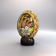 - Easter egg made of handmade wax technique: printing tools (pysachok-kistka) and wax on real chicken egg (egg in the middle of a blank), aniline dyes painted. All eggs are hand blown, washed and processed thermally. To make colors last longer pysanky are covered with several layers of UV protection.
