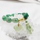 主墜以**岫玉**雕**如意(如人所意)**、岫玉方珠流蘇設計,寶石飄花雅致,整體鍊身設計律動優美、綠意盎然。