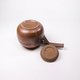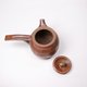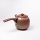 陶藝家先將稻草綁於壺上預留土色,再以灰釉進行噴釉。
