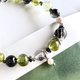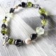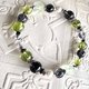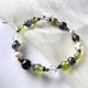 這條手鍊的配色充滿沉穩與活力:橄欖石與葡萄石的綠色代表成長與生命力;黑髮晶帶來穩定與專業;閃靈鑽則賦予清澈的智慧。