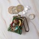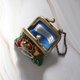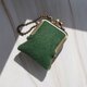小さなビーズ刺繍のがま口 No.78 グリーン×ウール ネックレス・バッグチャームにも アクセサリーケース 一点物 - 吊飾/掛飾 - 羊毛 綠色