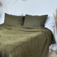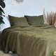 • Includes 1 linen fitted sheet and 2 pillowcases (optional) in Dark olive color