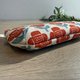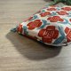 「昭和小花」以米色棉麻為底,搭配磚紅小花與青藍葉片,呈現濃濃的昭和復古氣息,彷彿走入老街小店裡,那些溫暖而樸實的手作時光。布面紋理帶著天然纖維的溫度,配上可愛的花朵拉鍊頭,每一次的搭配都略有不同,也成為作品的小小驚喜。