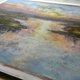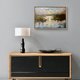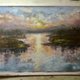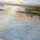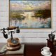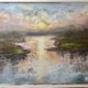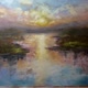 《晨曦映照靜謐水面》散發著寧靜與慰藉。溫暖的金色調與較冷的藍綠色調交織,創造出平衡且引人冥想的色彩組合。這幅畫作邀請觀者進行靜思,為任何空間帶來一份溫柔的平和感。