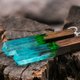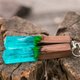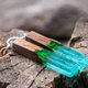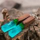由木頭和樹脂製成的耳環“瀑布”由胡桃木和藍色樹脂製成,裡面有白色條紋,接縫是防過敏金屬。 耳環可以搭配同系列的精美戒指和吊墜。