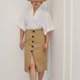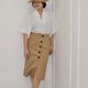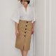 棉質卡其色排扣 開衩裙 簡簡單單的一片裙設計搭配上釦子 可以自己搭配簡單上衣就很好看 利用線條可以讓下半身看起來很修長 做修飾 口袋也會附上 開衩裙擺在坐下來的時候會微微露出腿部線條 是很低調卻也可以展現性感一面的單品 一件單品就可以搭配出氣質感 簡簡單單就很出眾 就是好搭配 可以修飾身材 好優雅 希望大家會喜歡:)