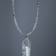 白水晶柱吊墜,內含晶中晶水晶柱體伴白幽靈體。晶中晶體光照下超美超亮。搭配漸變穿制的巴西透體切面黑髮晶珠鏈,左右兩邊各搭配了精緻切面銀珠。