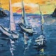 日落帆船油畫
