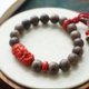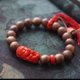 8mm天然加里曼丹沈香木 朱砂象神朱砂如意珠設計手串手持s - 手鍊/手環 - 木頭 咖啡色