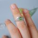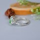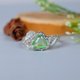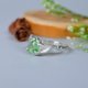 透明と明るいグリーンのバイカラーガーネットを使って、葉っぱモチーフのナチュラルなイメージの指輪を仕立てました。