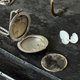 一個承載著無盡秘密的純銀盒子 (Locket),它穿越了維多利亞晚期的優雅,將一個世紀前的精緻工藝與情感帶到您的手中。這件寶物具備典雅的浪漫主義風格,根據內部800古老印記,為優雅且具歷史感的老純銀,墜子正面是手工雕刻的精緻花押字 'AM'