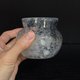 這件作品寬約8.5公分、高約7公分,重量為215克。玻璃為半霧面質感,細緻白紋交錯如羽毛軌跡,搭配圓壺狀瓶型特別親切。推薦擺放於靠近茶具、桌花、小燭台等生活器物旁。