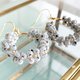 上品なホワイトグレーのチェコビーズ をフープ上に仕立たイヤリング/ピアスです。